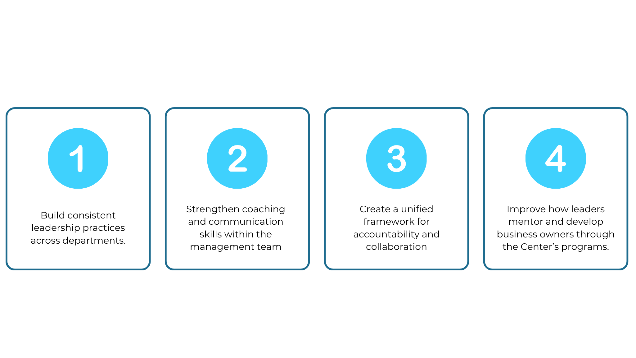 Help local entrepreneurs grow, create jobs, and build sustainable communities. But behind the mission, the organization was experiencing the same challenges as the businesses it served—rapid change, fragmented communication, and inconsistent leadership practices.