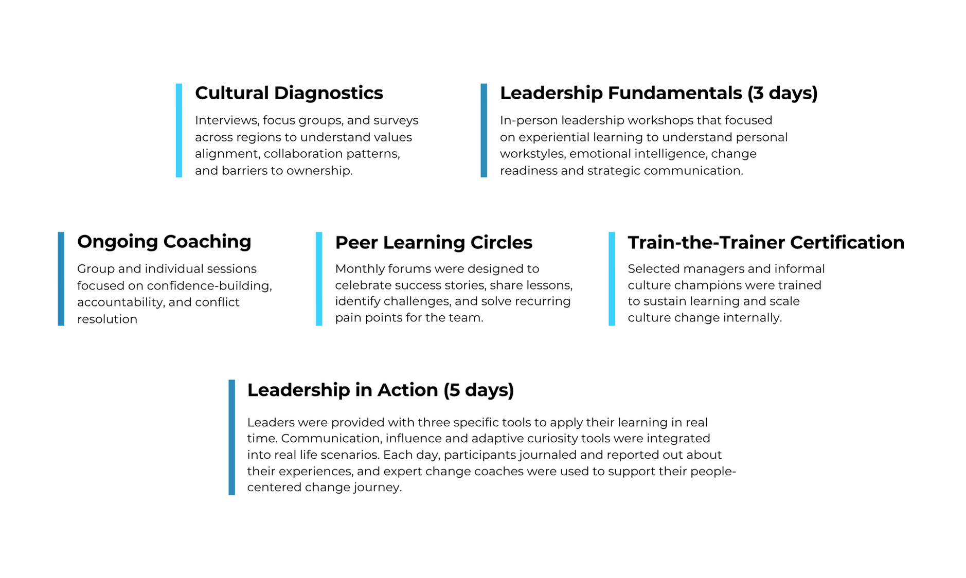 Following a comprehensive discovery process, Mind Market designed a 3-year initiative grounded in leadership psychology and organizational systems thinking.